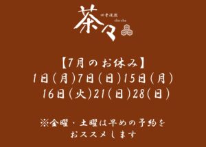 【7月のお休み】